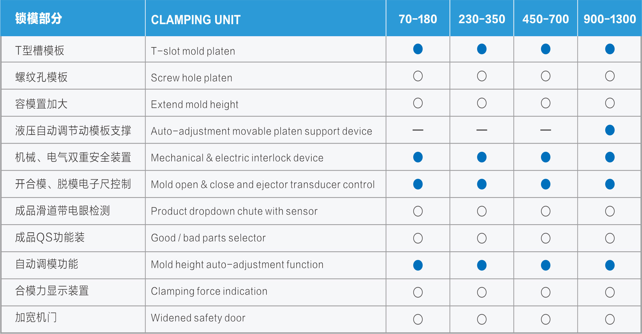 高质价比:注塑机吸收了欧美的原版设计精髓和高品质的制造工艺,在国内制造。具有极高质价比。高稳定性:注塑机使用行业高品质元件,能胜任长期高效工作,持久耐用。高专业化:依据客户的选择和实际需求,对机器的锁模、注射、驱动单元优化组合、满足客户的专业需求、节能高效。高重复精度:注塑机优化注塑过程,保证重复充模和始终如一的高品质注塑。精准注塑可与欧美注塑机相媲美。